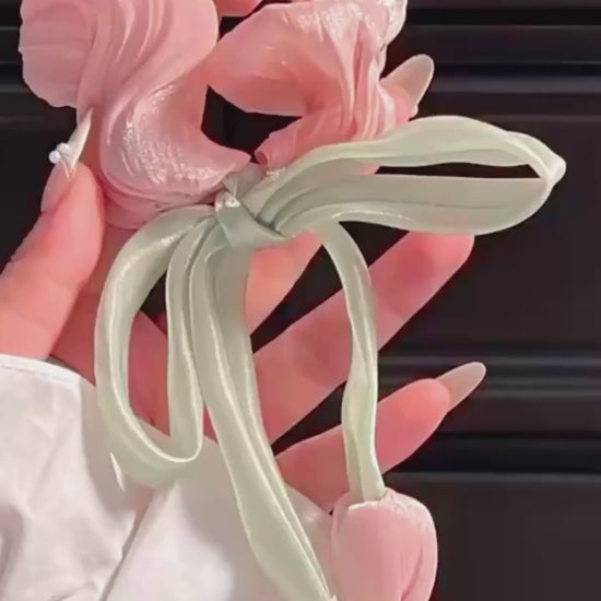1 Pc luxury satin Tulip scrunchie with pearls for women and girls
