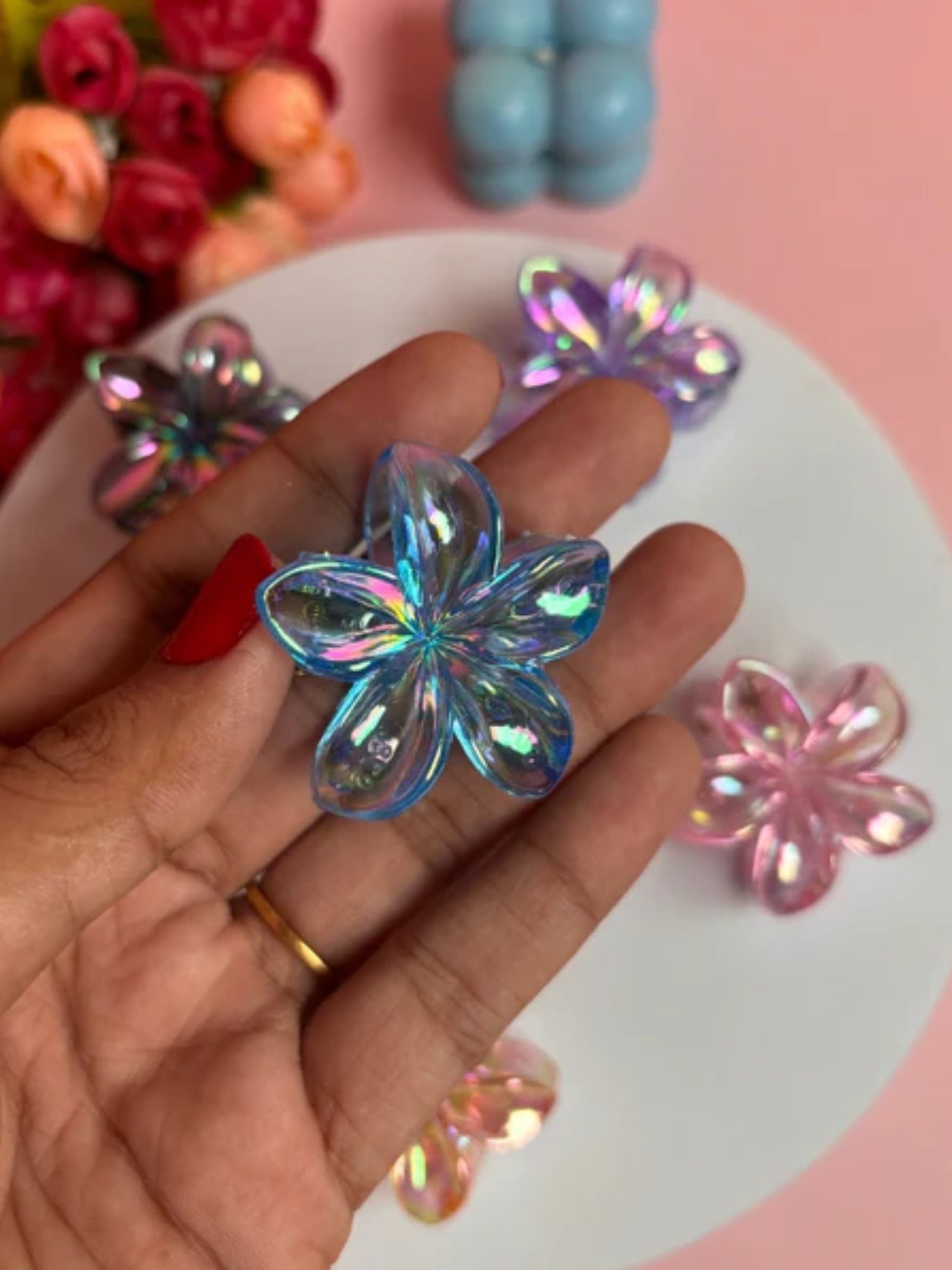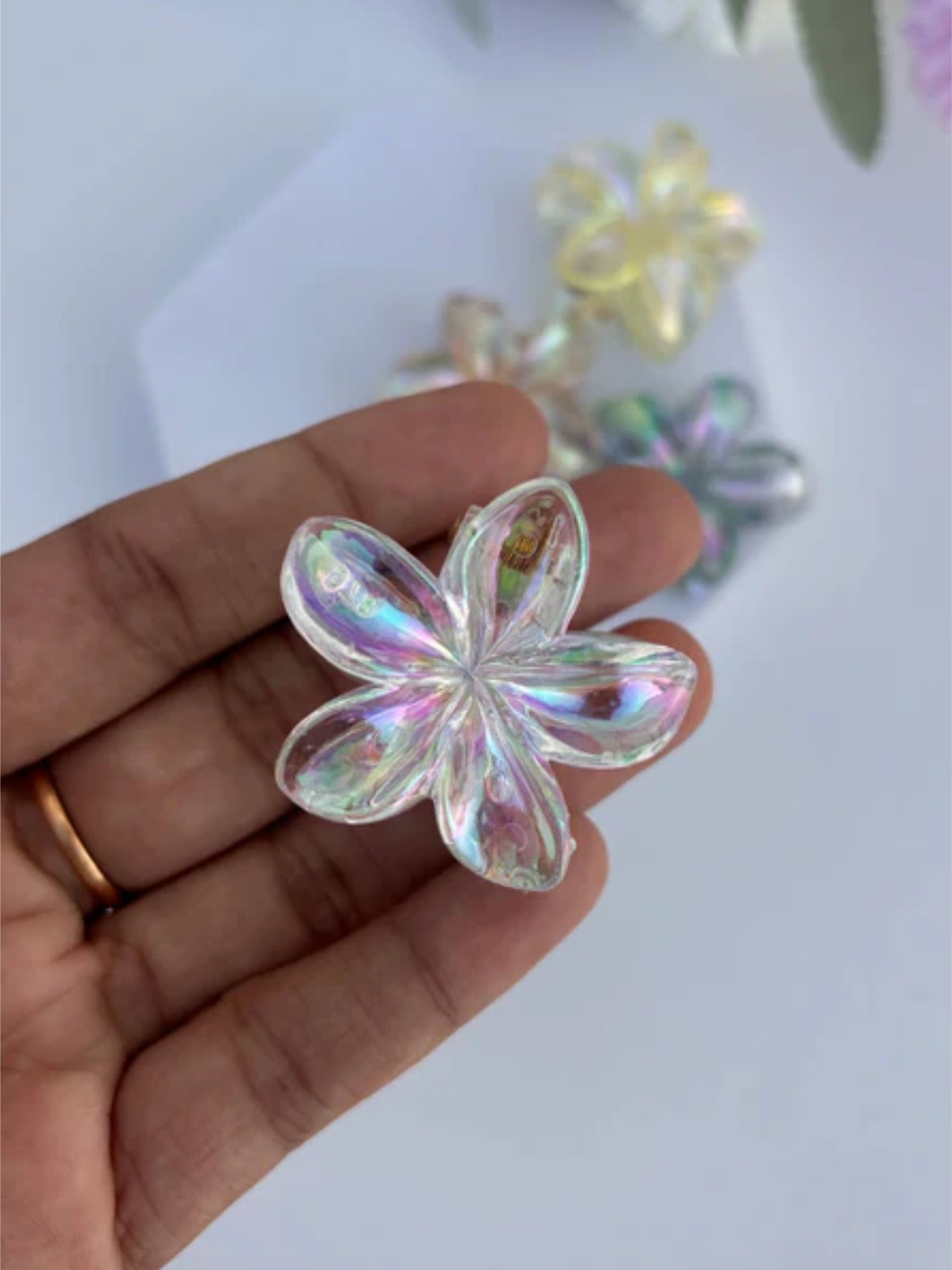 1 Pc Multicolor Abs Plastic Ranbow Shades Lilly Hair Claw For Women & Girls